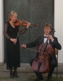 In dieser Kleinstbesetzung können wir eine schöne Auswahl klassischer Werke anbieten . | Von Haydn, Stamitz, Beethoven und Pleyel spielen wir Originalduos, welche eine festliche und doch heitere Stimmung zaubern. Außerdem existieren zahlreiche Transkriptionen berühmter Musikstücke, auch zum Beispiel von Arien aus Mozarts Zauberflöte. | Mit begleitendem Orchester von einer Halbplayback-Anlage kann man auch große Räume beschallen, wie zum Beispiel die Thermenlandschaft in Erding. | Ein Duo Geige-Cello ist äußerst mobil und kann auf Wunsch während der Auftrittszeit auch schnell den Platz wechseln. |